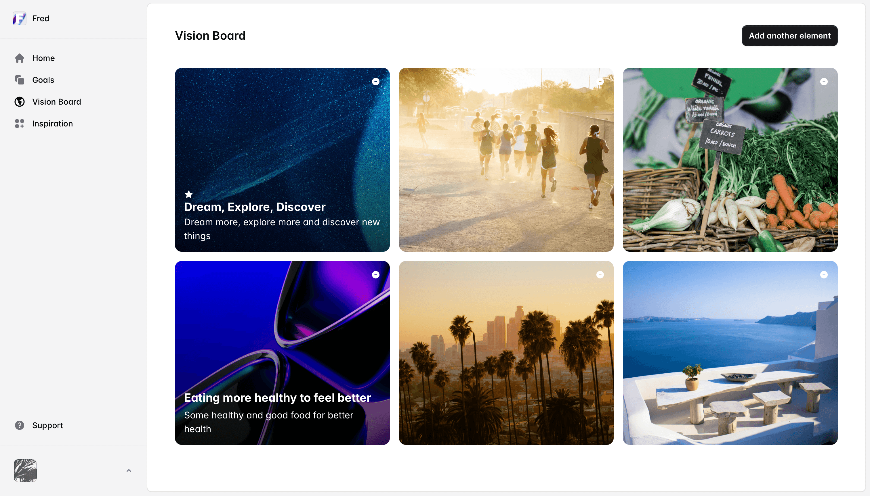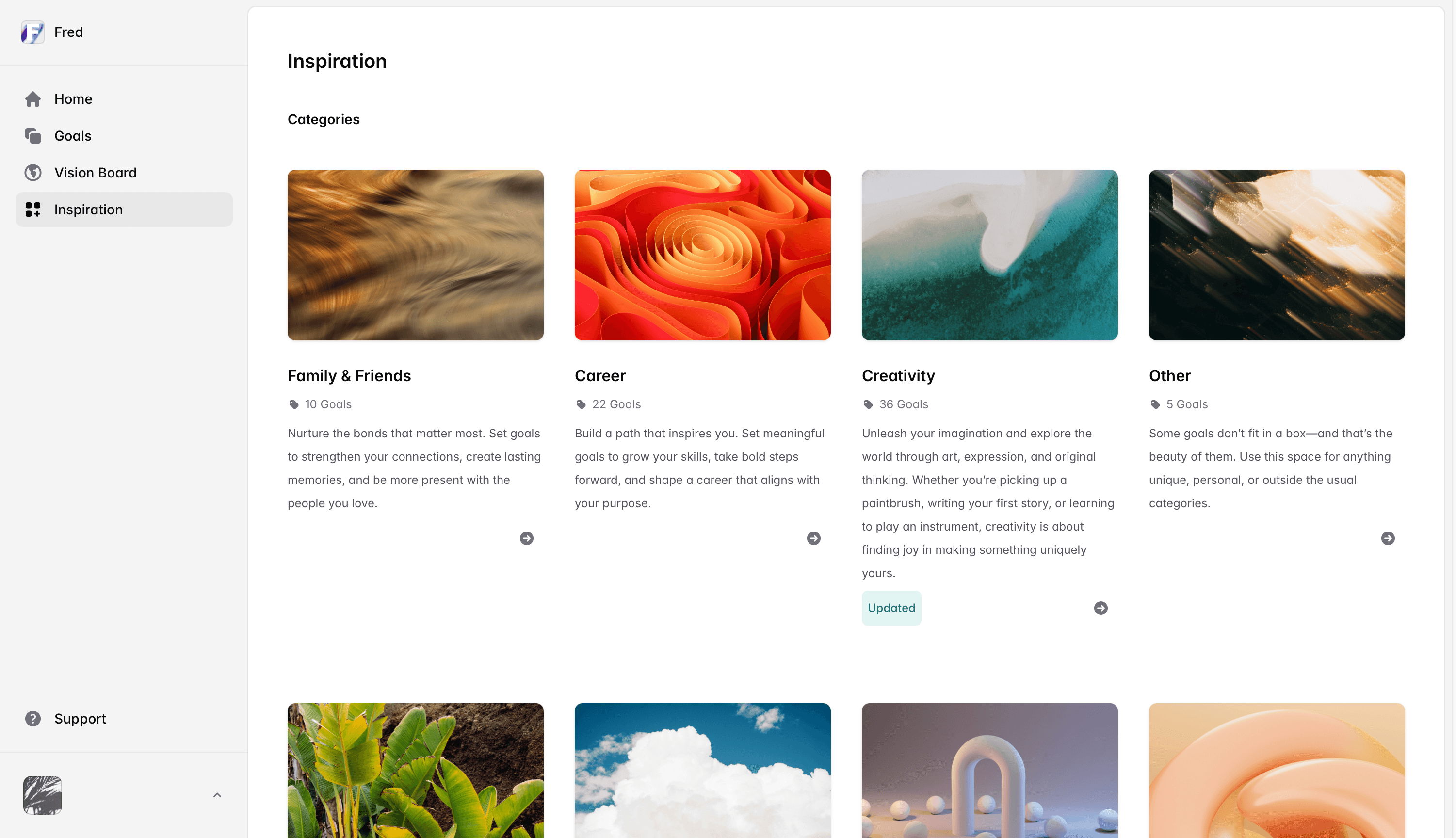 With Fred you have a new home to set your goals and track them until you achieve them. Become a better version of yourself with Fred.